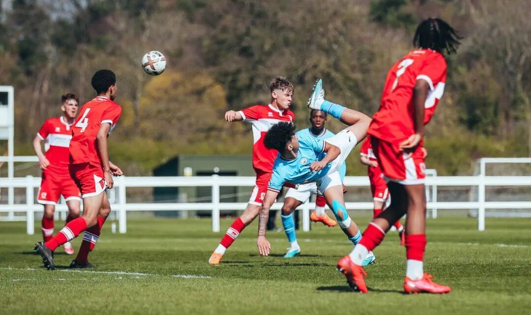 在曼城青训营激烈的内部竞争中,奥赖利一路成长起来,作为“10号”或“8号”球员展现持球突进、策划进攻的能力,施展左脚功力,2022-23赛季还作为曼城U18梯队队长,以13球14助攻的华丽数据帮助球队联赛夺冠。这个赛季他更有留名的瞬间——在新媒体传播无孔不入的时代,豪门青训营的动态也能被充分传达给球迷,而奥赖利就有背身“蝎子摆尾”勾射补时绝杀米德尔斯堡、对曼联40米外吊射破门的精彩镜头,流传于网络上。