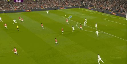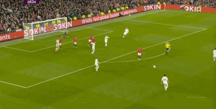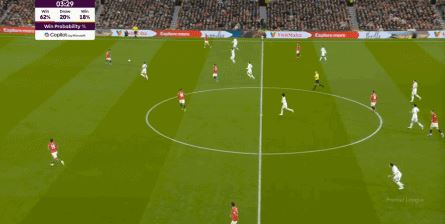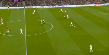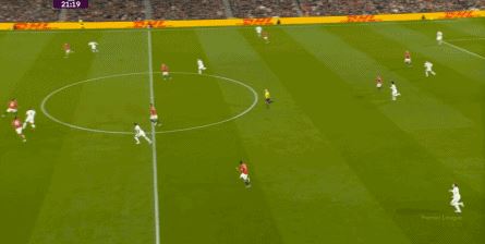 点燃了主场的气氛之后,曼联的表现有了一些提振,从而打出了一段连续的转换进攻: