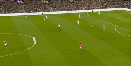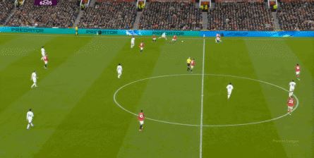 防守阶段,曼联先失去层次,后失去宽度,让利兹联还是完成了起脚,靠卢克-肖的解围才清除掉风险,然后才是曼联的反击。