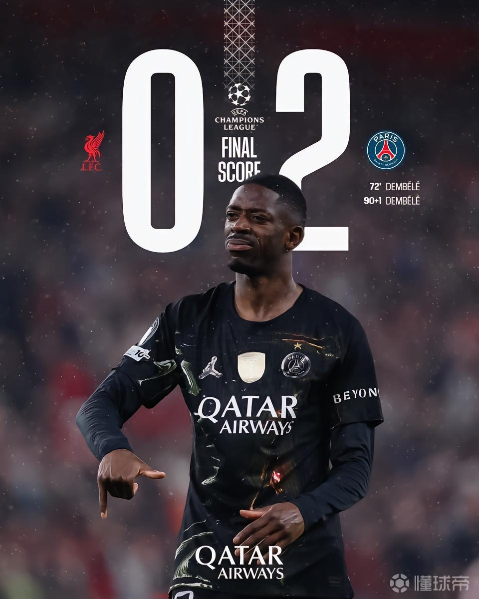 北京时间4月15日,在欧冠1/4决赛次回合的比赛中,登贝莱比赛末段完成梅开二度,最终帮助巴黎圣日耳曼在客场2-0击败利物浦,两回合总比分4-0淘汰对手闯入四强。