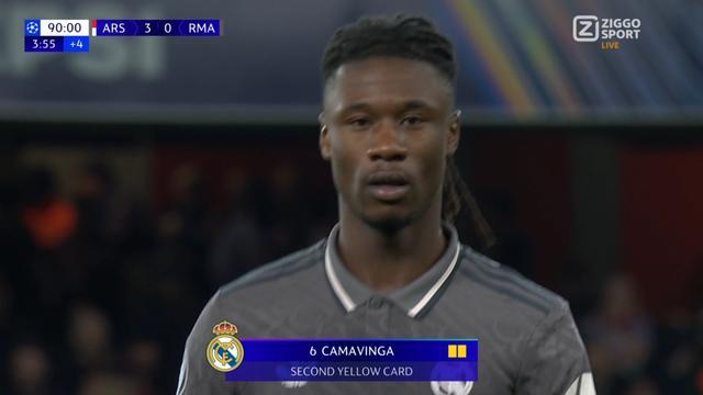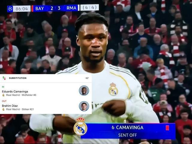如果说今天对阵拜仁是因为抱球拖延时间被罚下,那上赛季欧冠淘汰赛对阵阿森纳的那张红牌,简直能让人笑出鹅叫。那是比赛的第90+4分钟,离全场比赛结束就剩最后短短5秒钟了!卡马文加在裁判鸣哨后,非要多此一举地把球远远踢开。