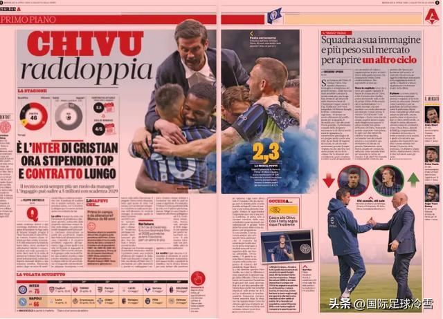 比如《米兰体育报》将齐沃放上封面,指出:赛季结束后齐沃将与国米续约,年薪从税后250万提升到400到500万欧元,接近翻倍。同时,齐沃将在球队建队规划、转会市场决策中,拥有更大的话语权。