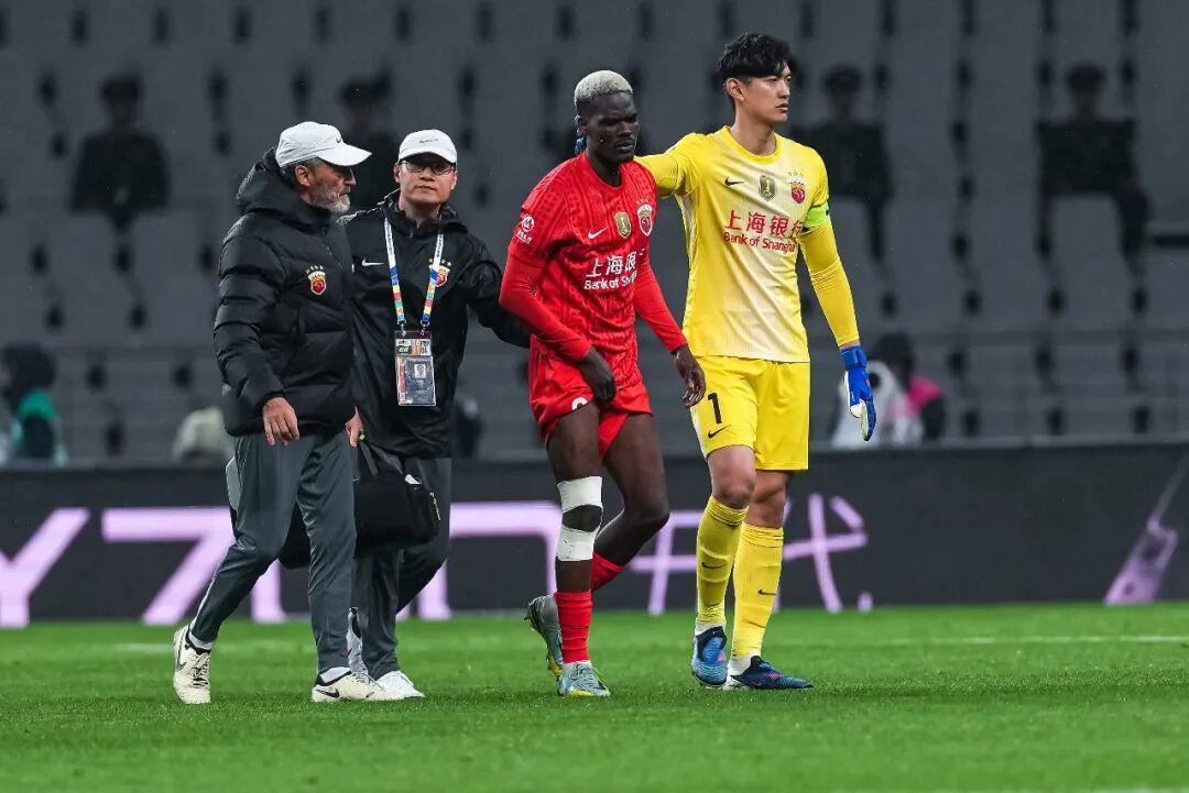 海港队医进场后,杨世元捂住了自己的头部,海港申请脑震荡换人。