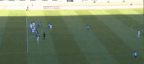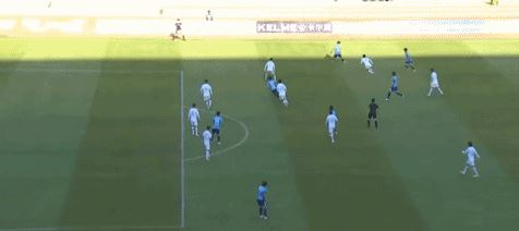 第65分钟,刘逸开出任意球,球弹地后稍稍高出球门