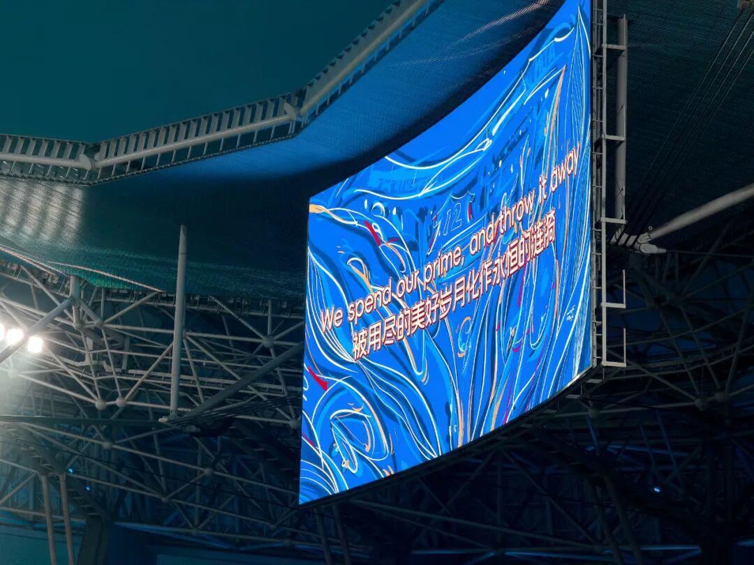 球场里人声鼎沸,蓝色的人潮在淅淅沥沥的雨中往各个看台的方向散开。有人说雨可能在赛前停下,但却越下越大,直到比赛开始。