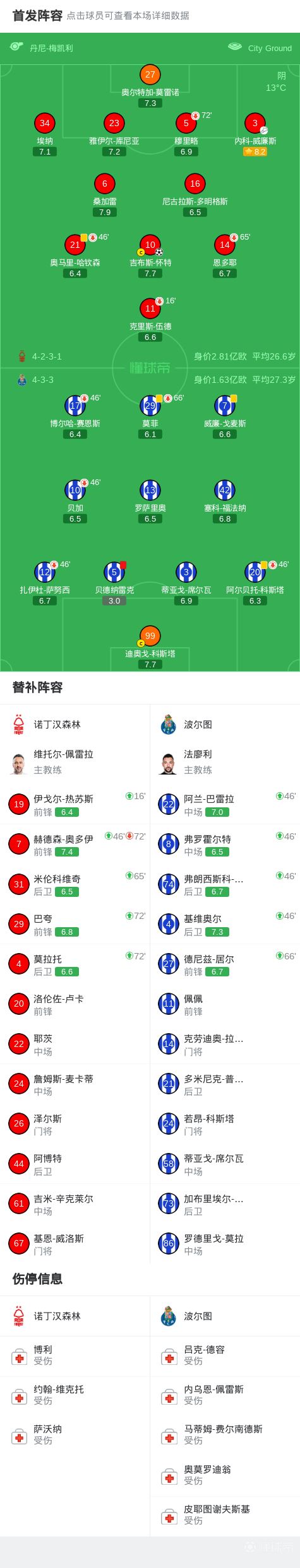 北京时间4月17日欧足联欧洲联赛 1/4决赛次回合,诺丁汉森林对阵波尔图。诺丁汉森林吉布斯-怀特破门。最终比分诺丁汉森林 1-0 波尔图。两回合总比分诺丁汉森林2-1波尔图,晋级四强。