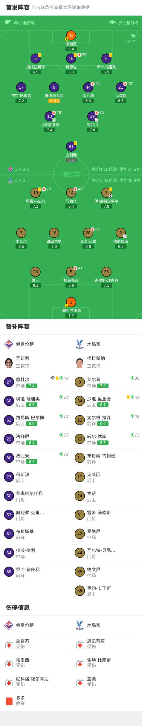 第53分钟,恩杜尔禁区外远射破门!佛罗伦萨2-1水晶宫