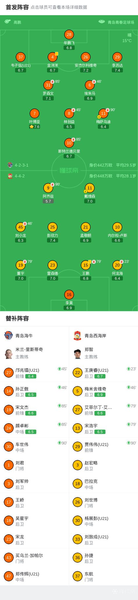 北京时间4月17日19:00,中超第6轮迎来青岛德比,青岛海牛坐镇青岛青春足球场迎战青岛西海岸,本场主裁判为高鹏,VAR裁判为杜建鑫。上半场,叶博亚进球被吹,李昊献神扑,海牛三度中框。下半场,韦子弦一脚似传似射也中框。最终,海牛主场0-0战平西海岸。