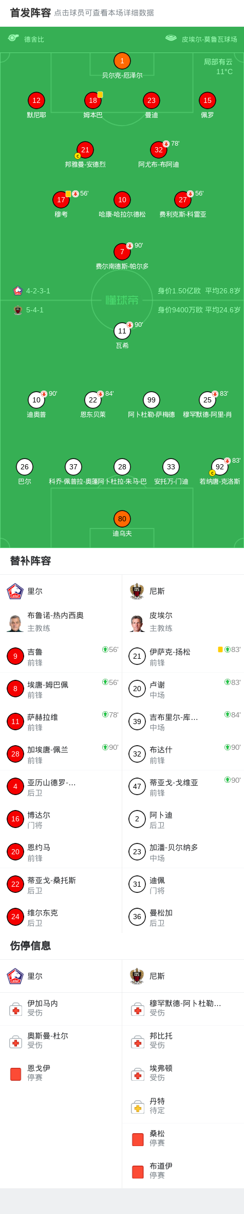 北京时间4月19日,法国足球甲级联赛第30轮展开较量,里尔坐镇主场迎来尼斯的挑战。经过全场比赛的争夺,双方均未能攻破对方球门,最终里尔与尼斯以0-0的比分握手言和。