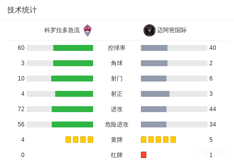 关键事件第18分钟,布赖特造点,梅西主罚点球命中,迈阿密国际1-0科罗拉多急流