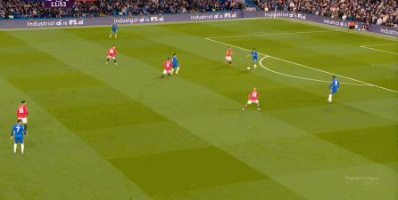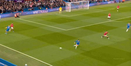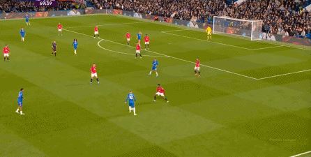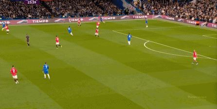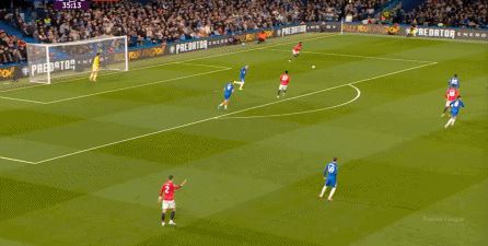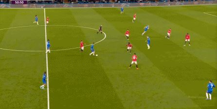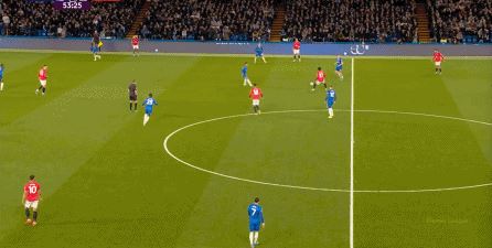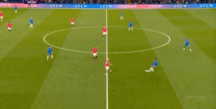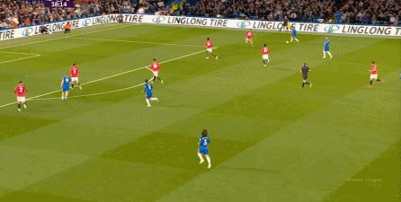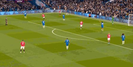 所以在曼联并不回避高位作业的情况下,切尔西在主场的开局打得其实还不错,他们既可以通过反击快速推进到前场: