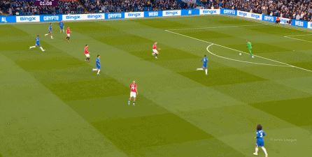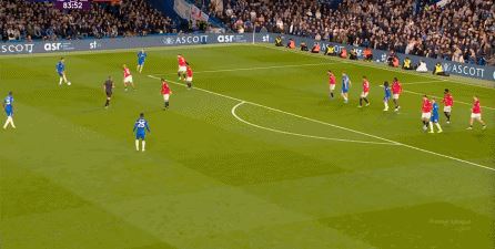不过在刚开始的时候,这一切还不明显,毕竟刚登场的时候,加纳乔还在对位打右路,所以在第18分钟,切尔西几乎按照同样的线路再次打穿曼联的中场,内托送出的挑传,没能找到加纳乔: