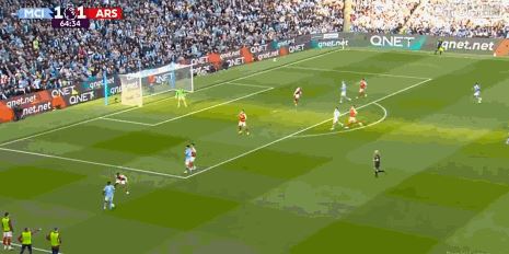 第65分钟,奥赖利禁区左侧横传,罗德里跟进射门踢空,哈兰德摆脱加布里埃尔扫射破门,曼城2-1阿森纳!