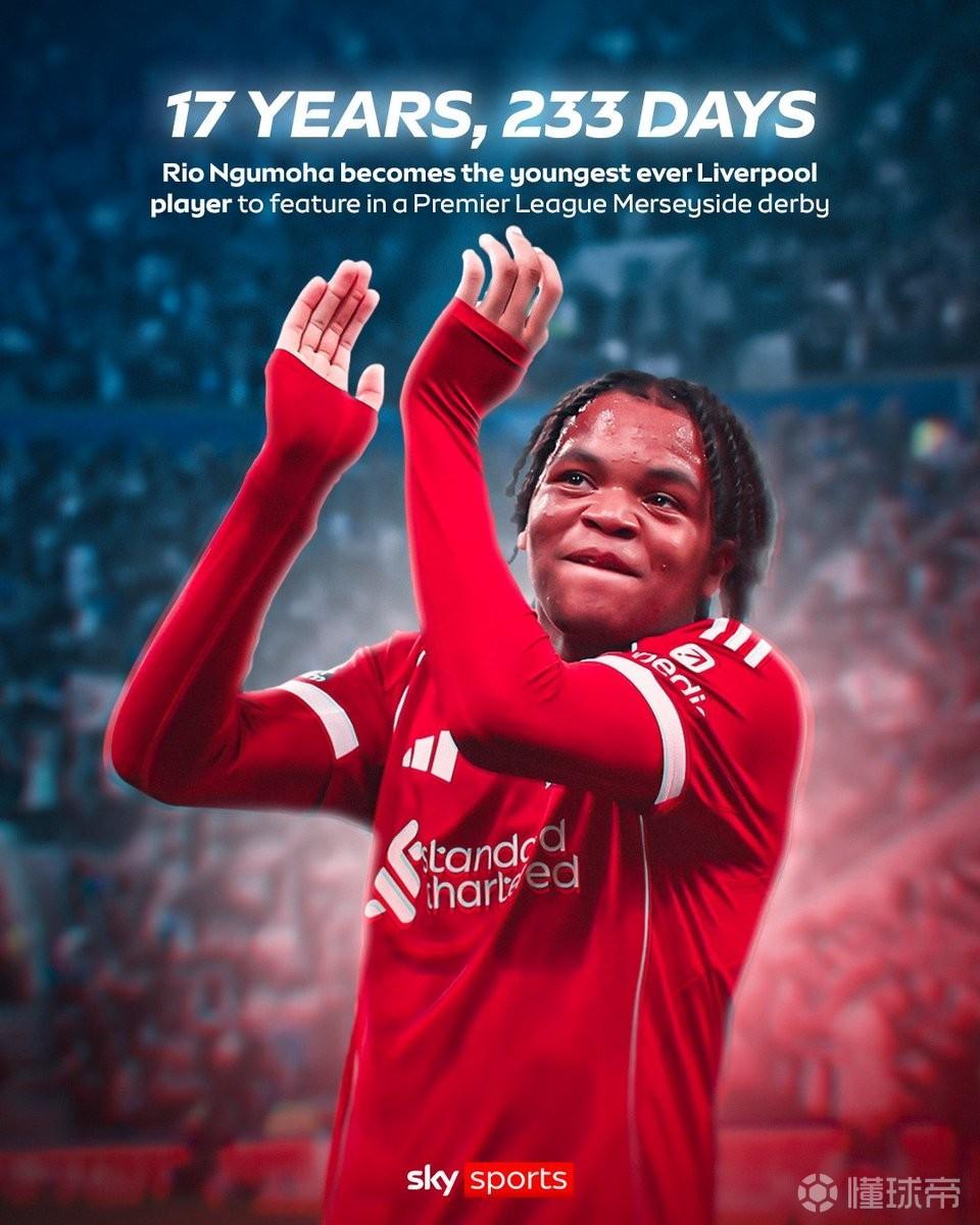 根据天空体育的统计,恩古莫哈也就此以17岁233天的年纪成为了利物浦队史在英超联赛中出战默西塞德德比最年轻的球员。
