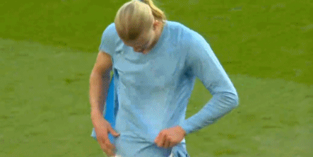 哈兰德的球衣后背被拉破,甚至连内衣也被拉破,球衣、内衣几乎成了一片破布。哈兰德脱下内衣扔给球迷,并且再次穿上了被撕破的球衣。
