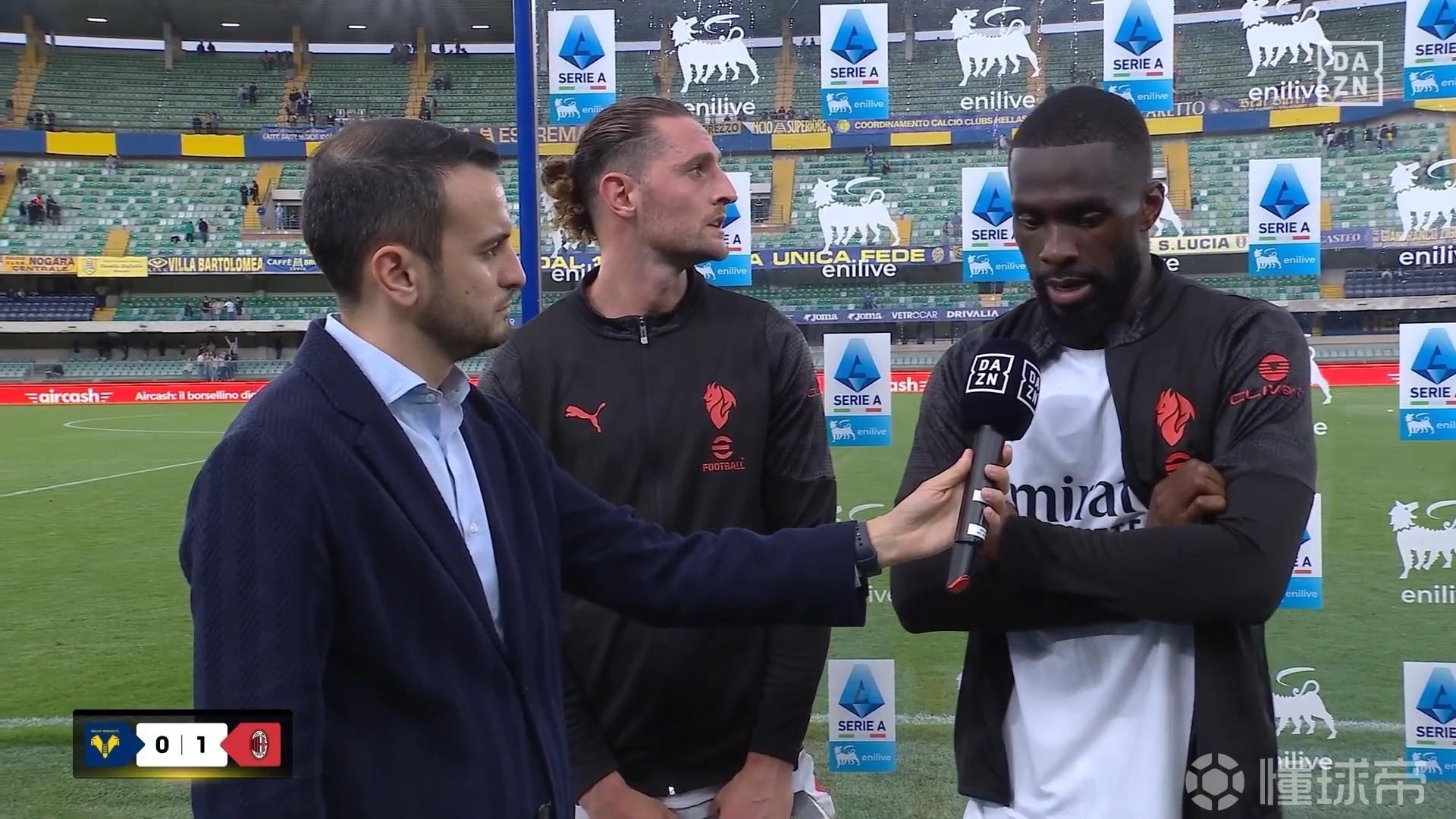 米兰在意甲第33轮客场1-0击败维罗纳,托莫里在赛后接受了DAZN的采访。