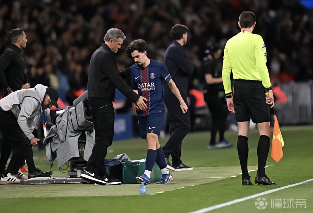 维蒂尼亚扭到了右脚踝,在与主教练恩里克及教练组进行了简短沟通后,维蒂尼亚一度坚持继续比赛,但随着不适加重,他在上半场结束前还是选择离场。第39分钟,维蒂尼亚被扎伊尔-埃梅里换下,随后直接返回更衣室。