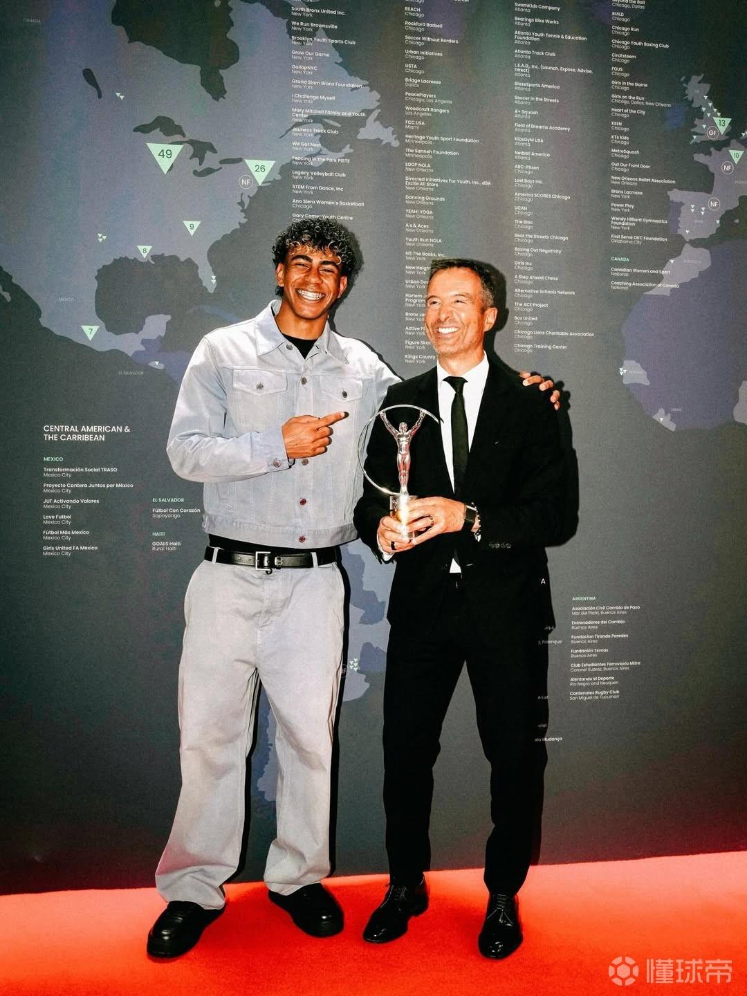 当地时间4月20日,2026年劳伦斯世界体育奖颁奖典礼在马德里举行。18岁的巴萨球星拉明-亚马尔获得了劳伦斯年度最佳青年运动员奖。随后,亚马尔也在社媒晒出了自己参加颁奖典礼的照片,分享喜悦。