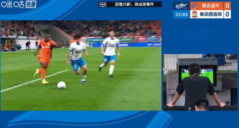 第34分钟,叶博亚切入禁区倒地,主裁判观看VAR后未判罚点球