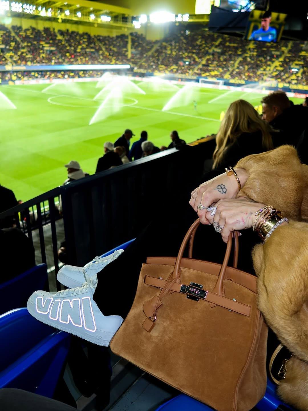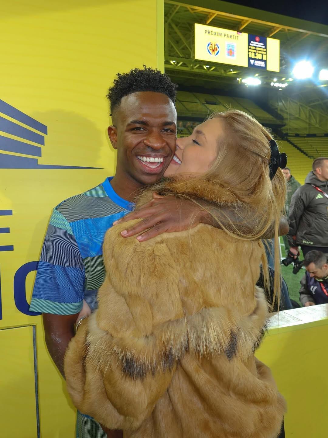 西甲第21轮,皇马客场2-0战胜比利亚雷亚尔,维尼修斯女友弗吉尼亚也来到了黄潜主场观看比赛,在赛后发布了社媒庆祝男友比赛获胜。