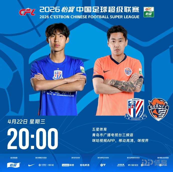 北京时间今晚20点,中超联赛第7轮,上海申花主场迎战青岛海牛,赛前两队首发阵容公布。