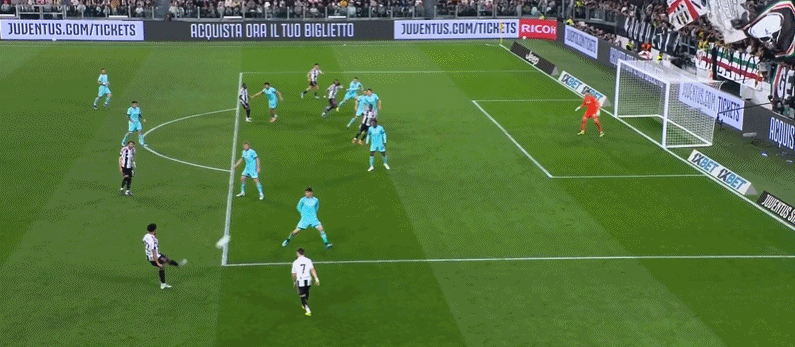 第57分钟,麦肯尼右路传中,凯夫伦-图拉姆头球破门!尤文2-0