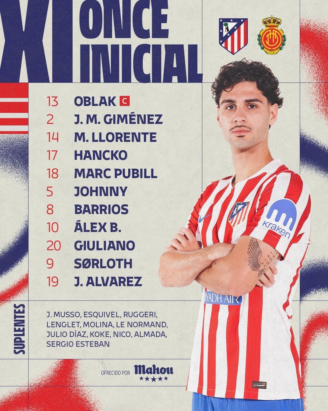 北京时间1月25日21点,西甲第21轮,排名第三的马竞主场对阵马略卡。本场主裁判为何塞-马里亚-桑切斯。双方赛前公布首发名单。