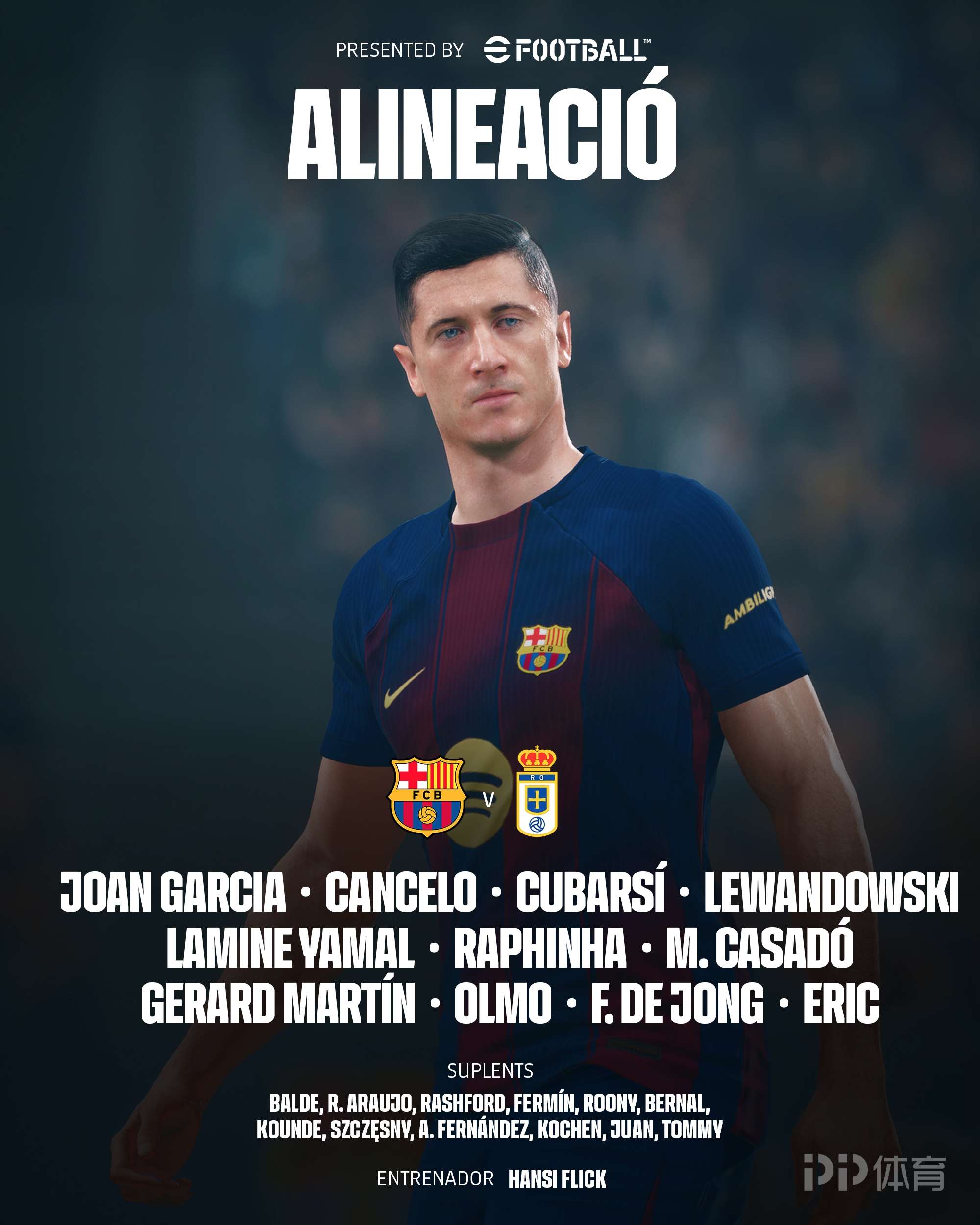 、24-里克-加西亚、17-卡萨多、21-德容、10-亚马尔、20-奥尔莫、11-拉菲尼亚、9-莱万