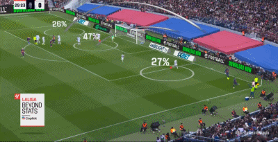 第26分钟,埃里克-加西亚尝试脚后跟射门,皮球折射后出底线