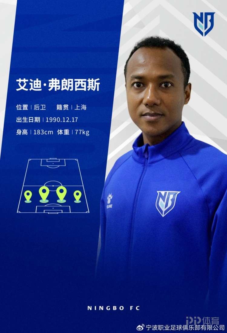 经与球员本人协商一致,即日起,球员艾迪·弗朗西斯正式加盟宁波职业足球俱乐部,新赛季他将身披宁波队战袍,为球队出战各项赛事。