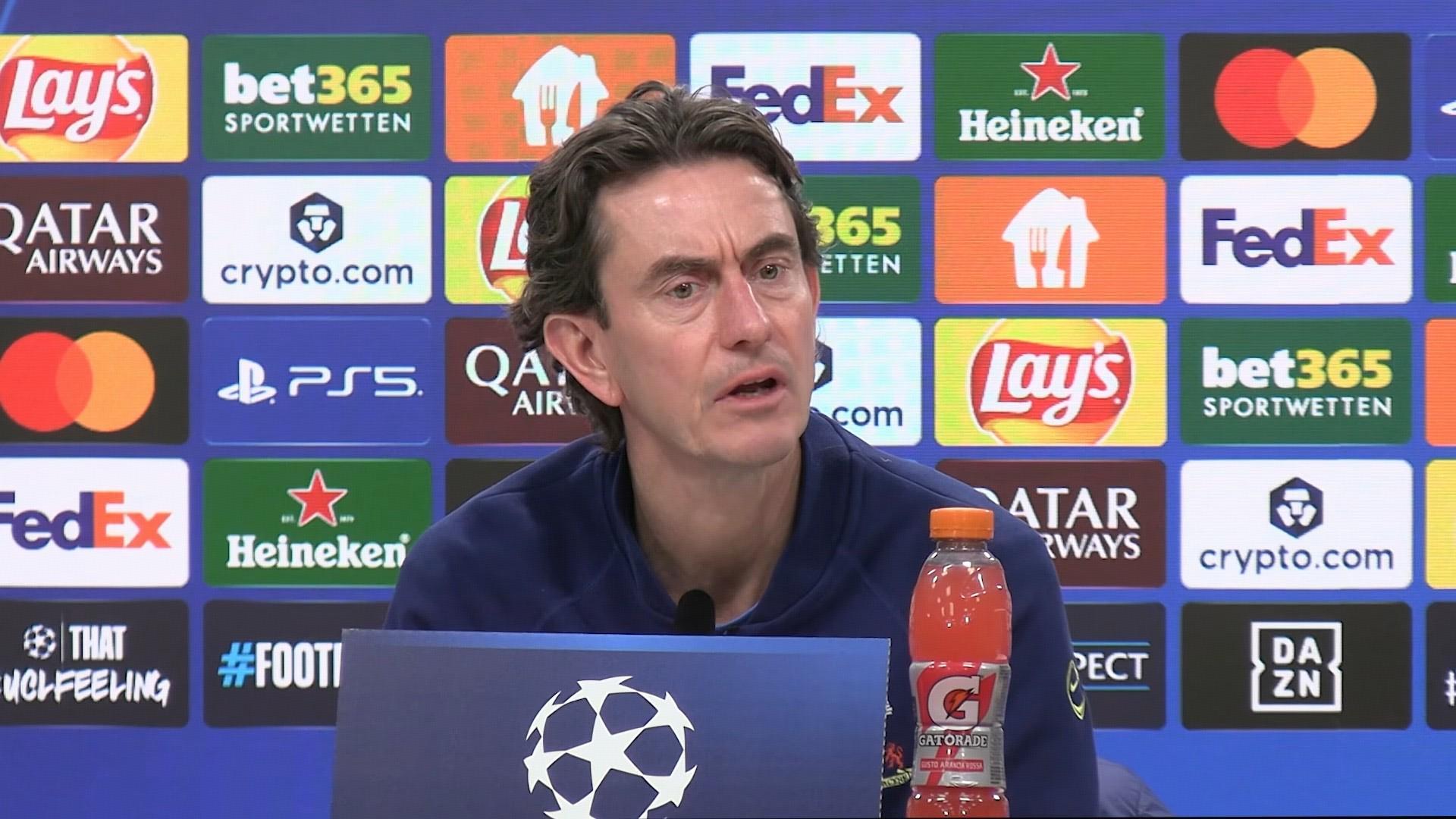 我不能代表上赛季发表意见,多姆稍后也许可以谈谈。对我来说,我看到的是明天摆在我们面前的机会,我们想尽一切努力去用双手把握住它。我想这很明确,我在对阵多特蒙德之前就说过,在目前的伤病和球员大名单的情况下,我们可用的球员非常有限。自从那场比赛以来,不幸的是卢卡斯(贝里瓦尔)和佩德罗都无法上场。