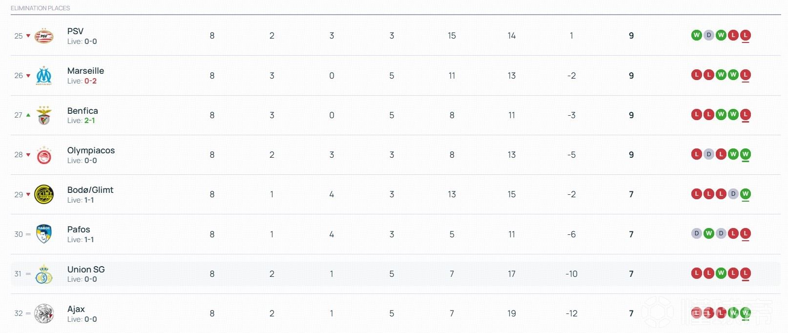 北京时间1月29日,欧冠联赛阶段最后一轮18场比赛全部结束了上半场的争夺。上半场结束后,曼城进入前八名,切尔西掉出前八名。西甲双雄皇马、巴萨目前都暂时落后,分别掉至第5和第13。