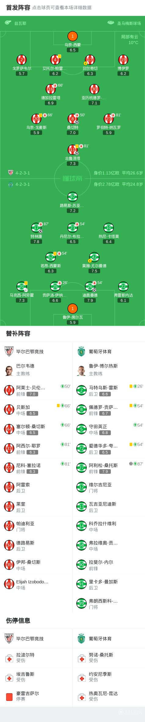 第62分钟,特林康破门将比分扳平,葡萄牙体育2-2毕尔巴鄂竞技