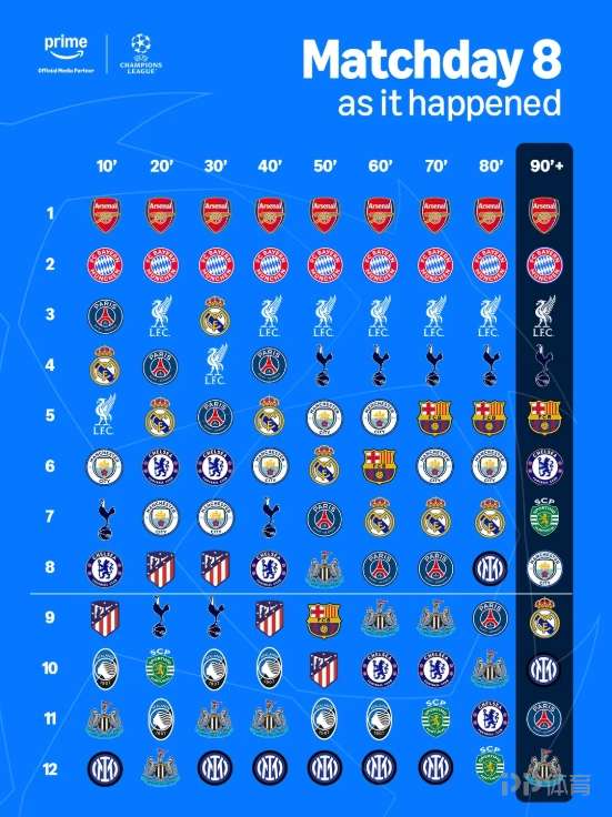 北京时间今日凌晨,2025-26赛季欧冠联赛小组赛第8轮全部战罢。这一夜,12场比赛同时开球,悬念拉满。