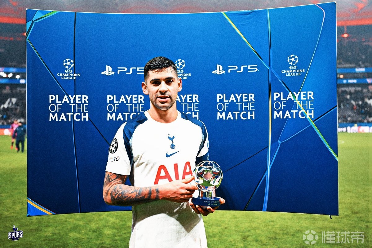 热刺在客场2-0击败法兰克福,热刺队长罗梅罗凭借其出色表现,获得全场最佳球员。