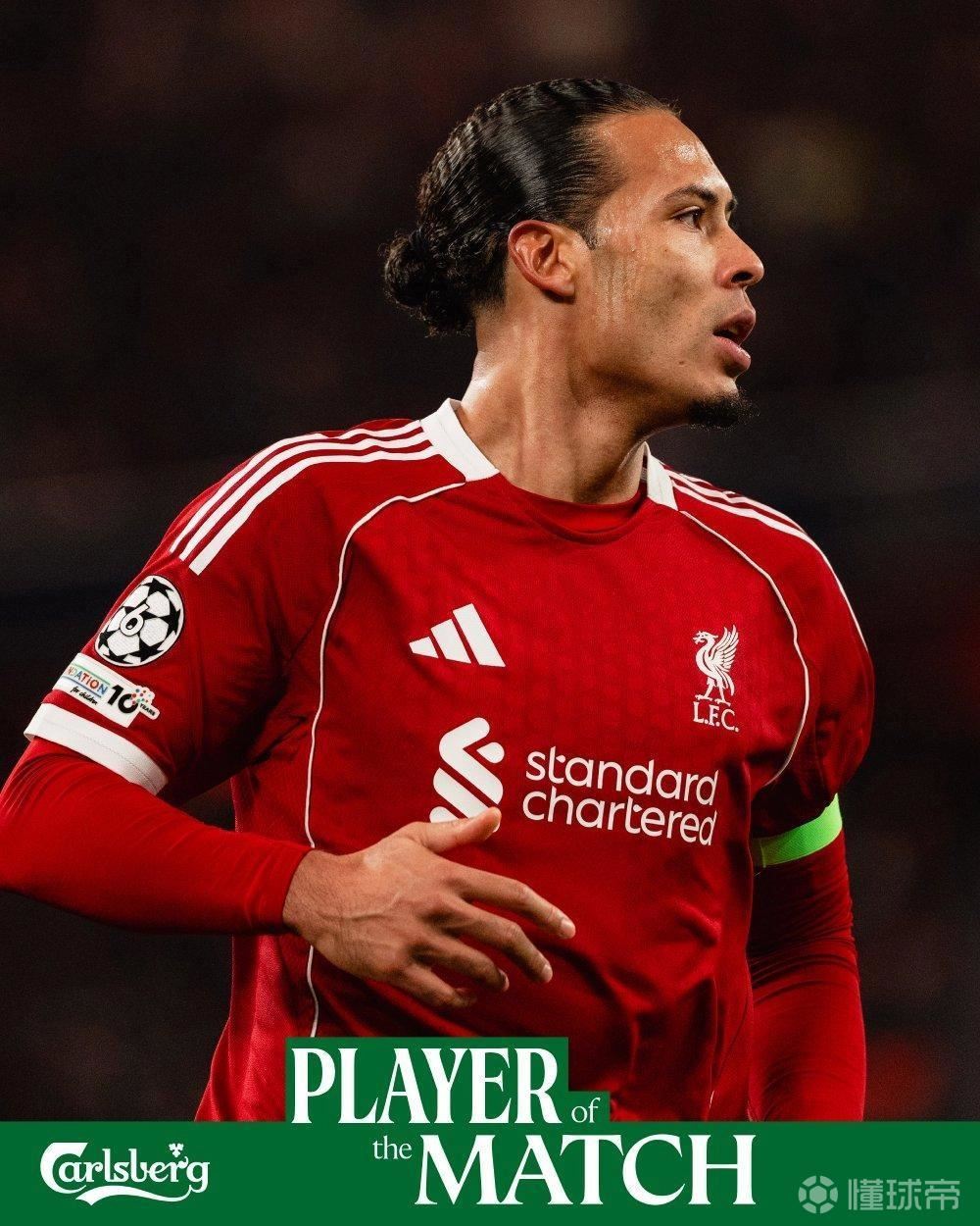 这是范戴克本赛季首次当选利物浦队内全场最佳球员。