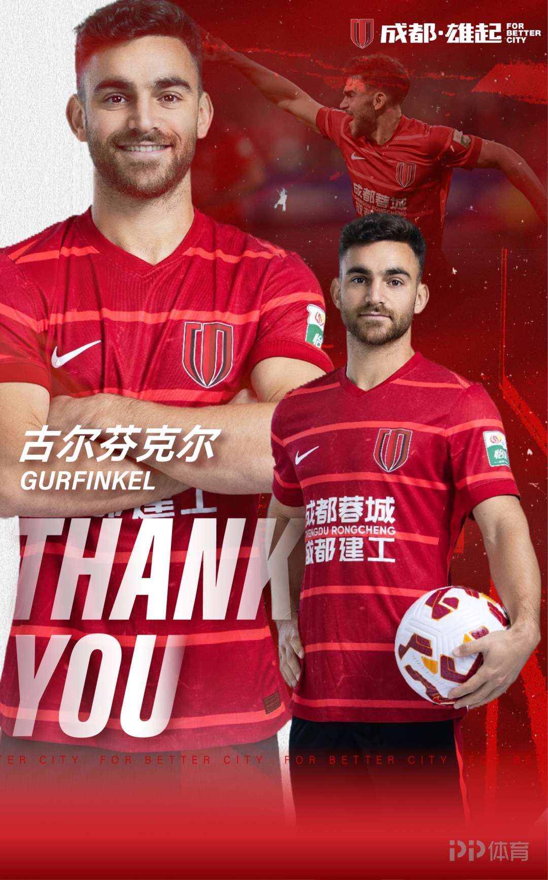 经与球员本人友好协商并达成一致,古尔芬克尔与成都蓉城足球俱乐部的合同到期不再续约。