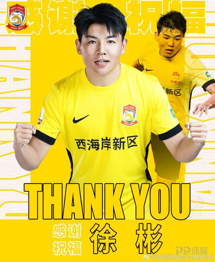 青岛西海岸俱乐部官方发文,对即将踏上海外赛场的徐彬送上祝福。