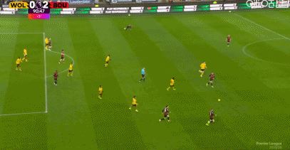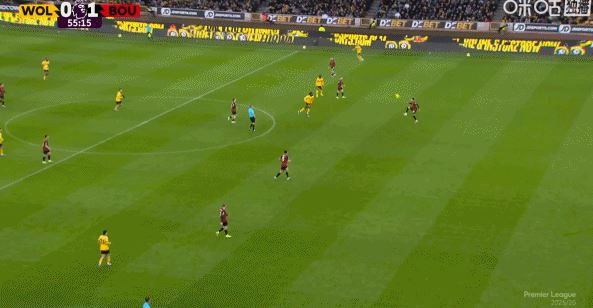 第33分钟,伯恩茅斯精彩配合,克鲁皮轰世界波,狼队0-1!