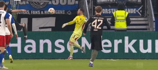 第45+5分钟,小红书丨神勇,诺伊尔连续两次扑救,随后裁判示意汉堡越位