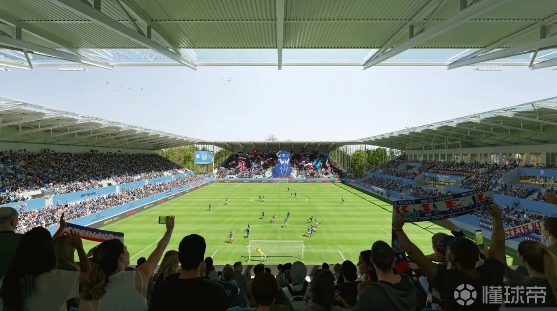 基尔市官网公布了这个分三阶段进行的项目融资方案,工程将于下赛季末开始,首先重建主看台,预计2030年全部完工。