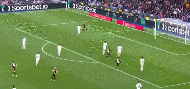 第16分钟,维尼修斯1v3扣球虚晃+写意兜射破门!皇马1-0巴列卡诺!