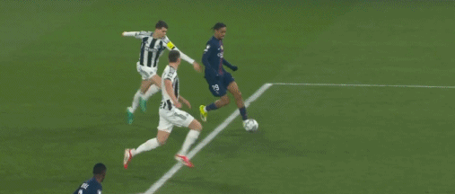 第8分钟,维蒂尼亚禁区前冷静破门,巴黎1-0纽卡