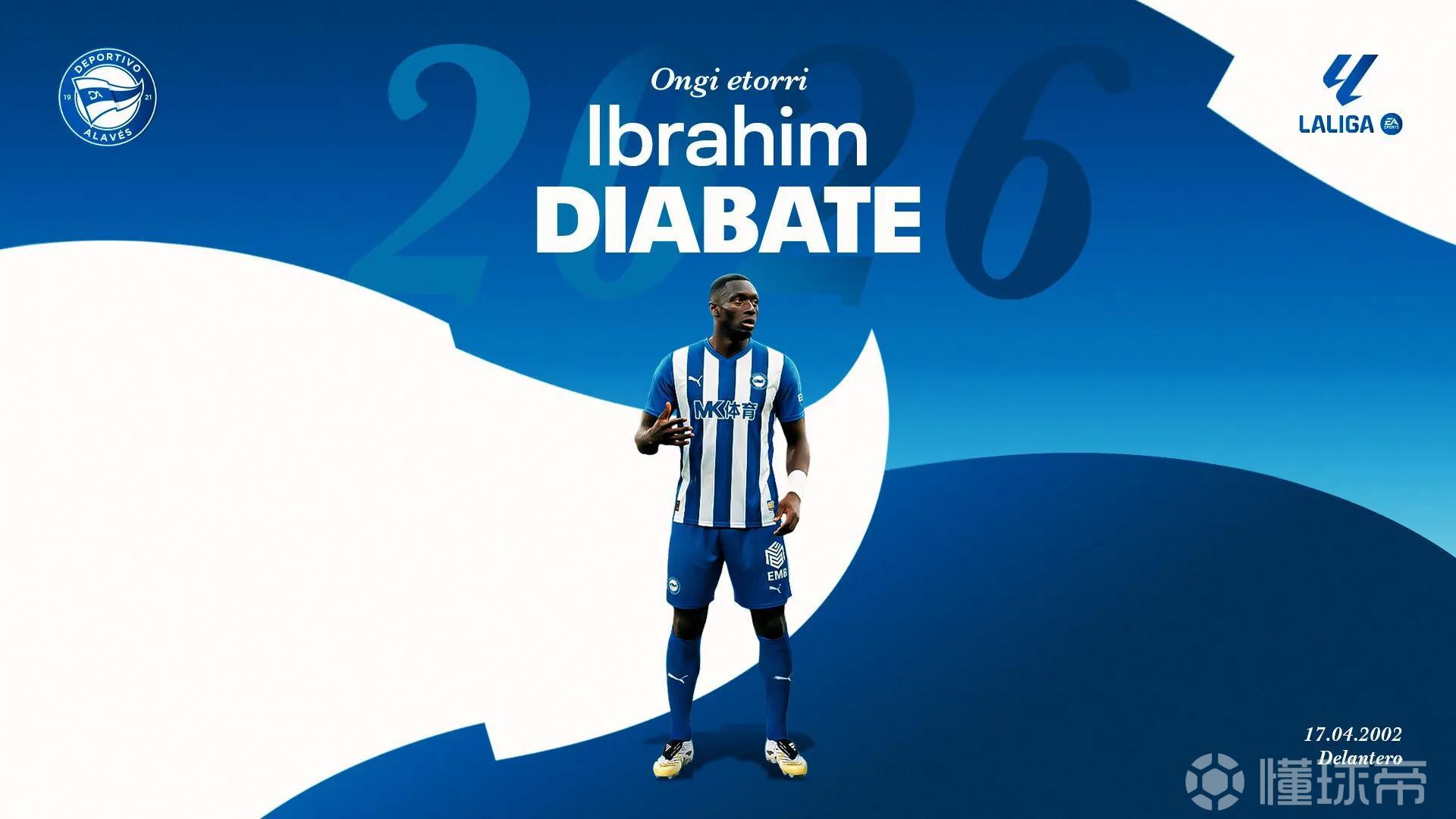 如今阿拉维斯官方确认,易卜拉欣-迪亚巴特将在本赛季的剩余时间里以租借的身份为他们球队效力。