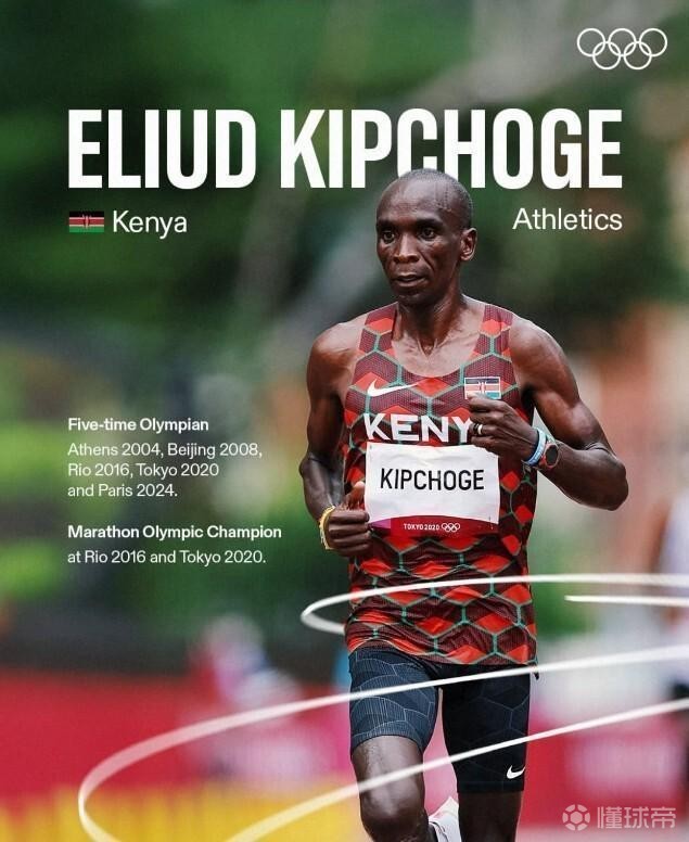 埃鲁德-基普乔格(肯尼亚) 是有史以来最伟大的长跑运动员之一。作为五届奥运选手(2004年雅典、2008年北京、2016年里约、2020年东京、2024年巴黎),他是两届奥运会马拉松冠军(2016年里约、2020年东京)。