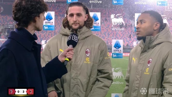 米兰在意甲第23轮客场3-0击败博洛尼亚,打进一球的拉比奥在赛后接受了DAZN的采访。