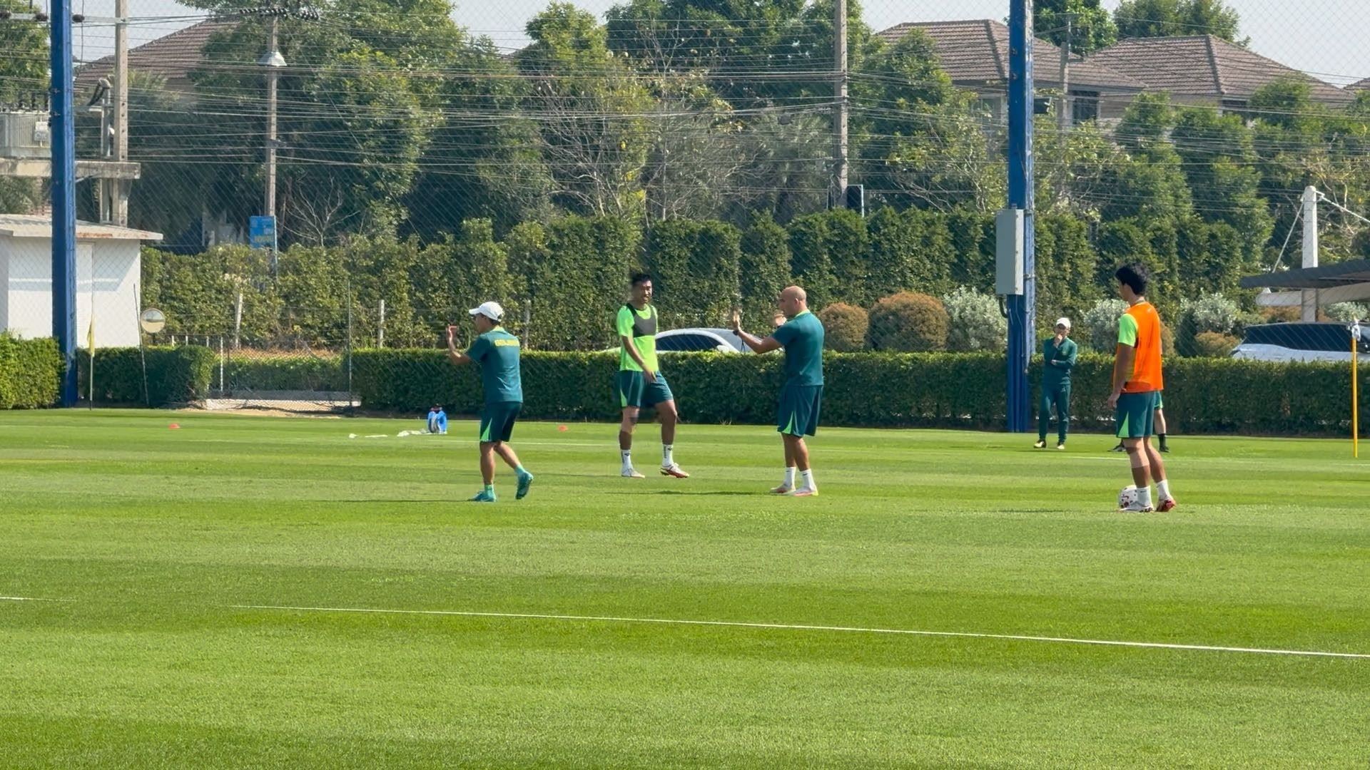 今天上午,曼谷当地的气温也达到了32摄氏度,再加上太阳的暴晒,训练确实有些艰苦。国安租下的这块训练场地,草皮质量非常不错,训练场地的设施条件也比较不错。