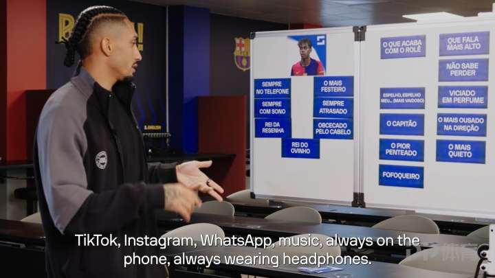 巴萨球员拉菲尼亚接受Sofascore采访,在一个互动环节中他将一些短语放在了相应的球员上,他也谈到了自己对于亚马尔的一些看法和相关的趣事。
