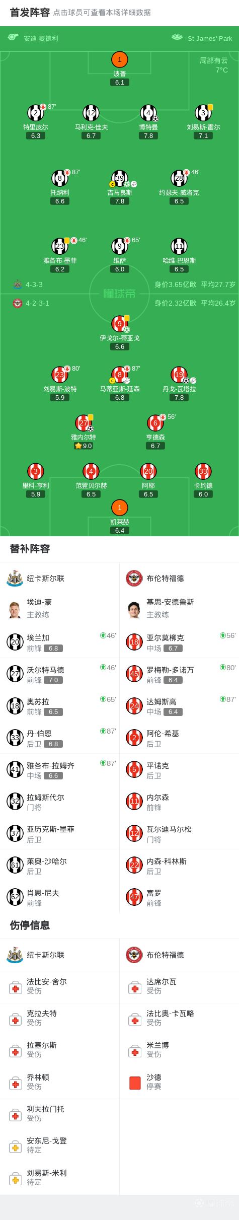 第36分钟,瓦塔拉助攻,雅内尔特头球顶进,纽卡1-1布伦特福德