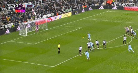 第78分钟,卡约德防守犯规送点,吉马良斯点射命中,纽卡2-2布伦特福德
